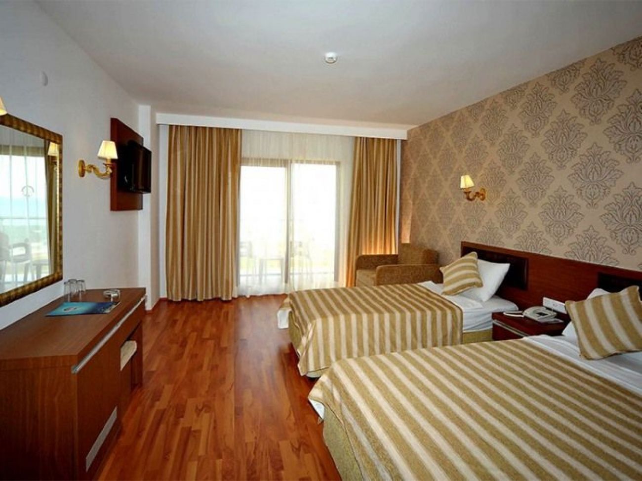 Хотелът разполага общо с 470 стаи, от които 310 стандартни стаи и 124 фамилни стаи. Всички стаи са оборудвани с климатик, сателитна телевизия, телефон, баня с вана, сешоар, мини бар (платен), сейф (платен), балкон. Почистване на стаите– всеки ден, смяна на бельото и кърпите – 3 пъти в седмицата.