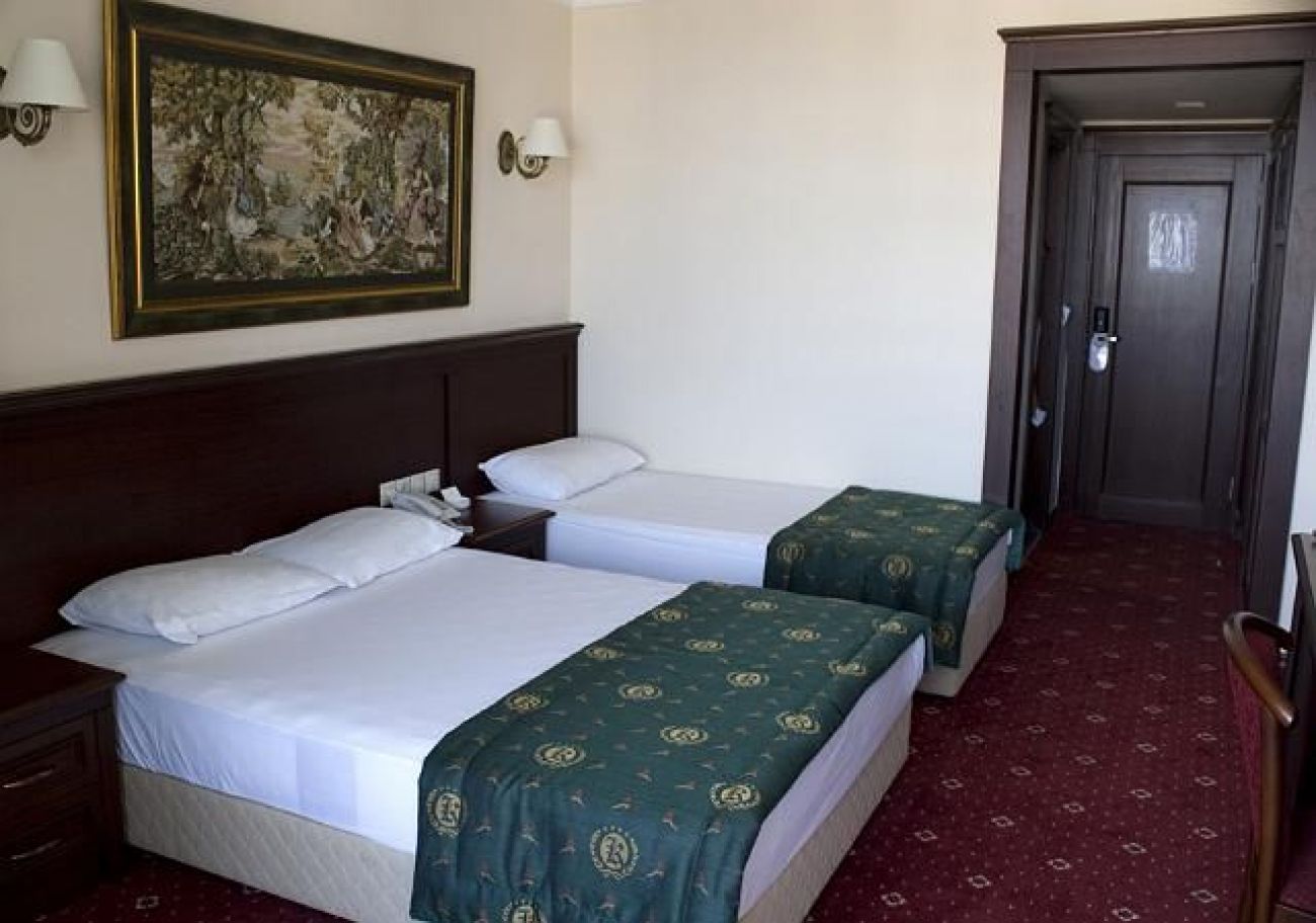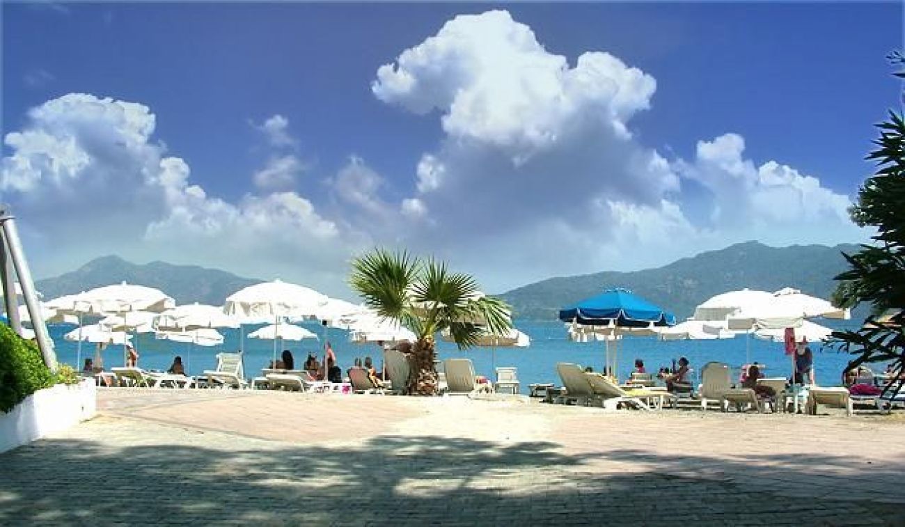 На 95 км. от летището в гр. Даламан, 2 км от центъра на Мармарис. На 25м. от морето. Градски плаж;