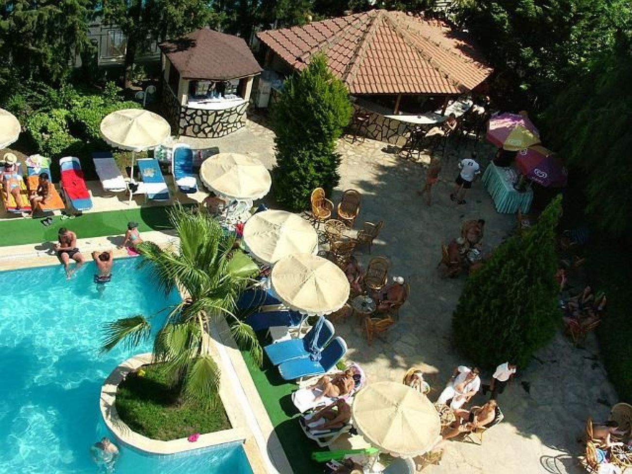 На басейна: Чадъри, шезлонги, матраци – безплатно; Хотела не предлага кърпи за басейна и плажа.