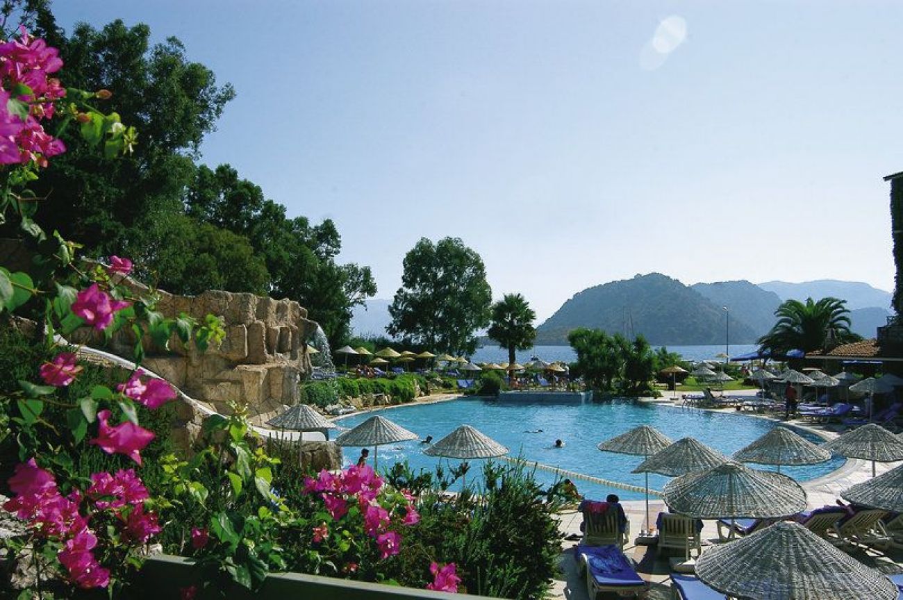На 105 км. от летището в гр. Даламан, 8 км от центъра на Мармарис, в центъра на Ичмелер, на брега на морето със собствен плаж – пясъчен. Реновиран 2002г