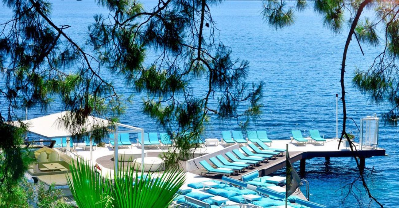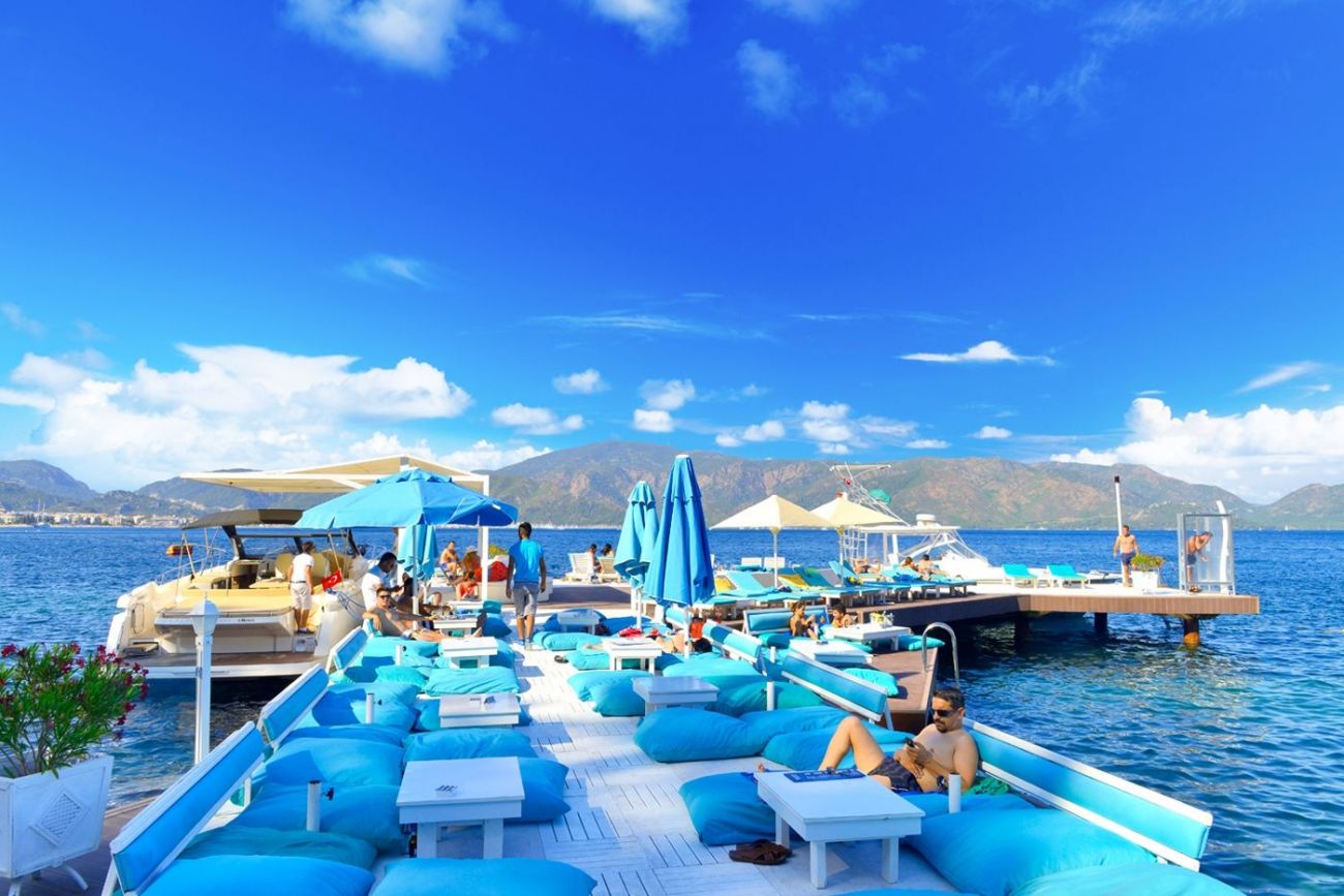 На 98 км. от летището в гр. Даламан, 6 км от центъра на Мармарис, 2 kм. от Ичмелер, на брега на морето със собствен плаж – изкуствена платформа опесъчена, пирс.