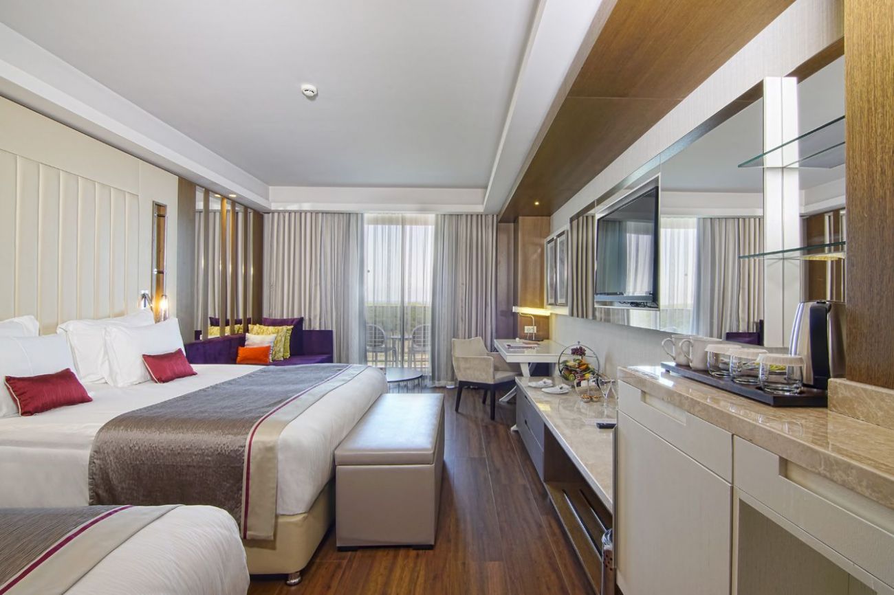 Основен ресторант, 5 a лa карт ресторанта (с предварителна резервация), 9 бара, 5 открити и 1 закрит басейн, 4 водни пързалки, аквапарк, мини клуб(4 - 12г.) магазини, Спа център, дискотека, TВ зала, 9 конферентни зали, билярд, боулинг, тенис корт, фитнес цетър, дартс, тенис на маса, плажен волейбол, паркинг.
