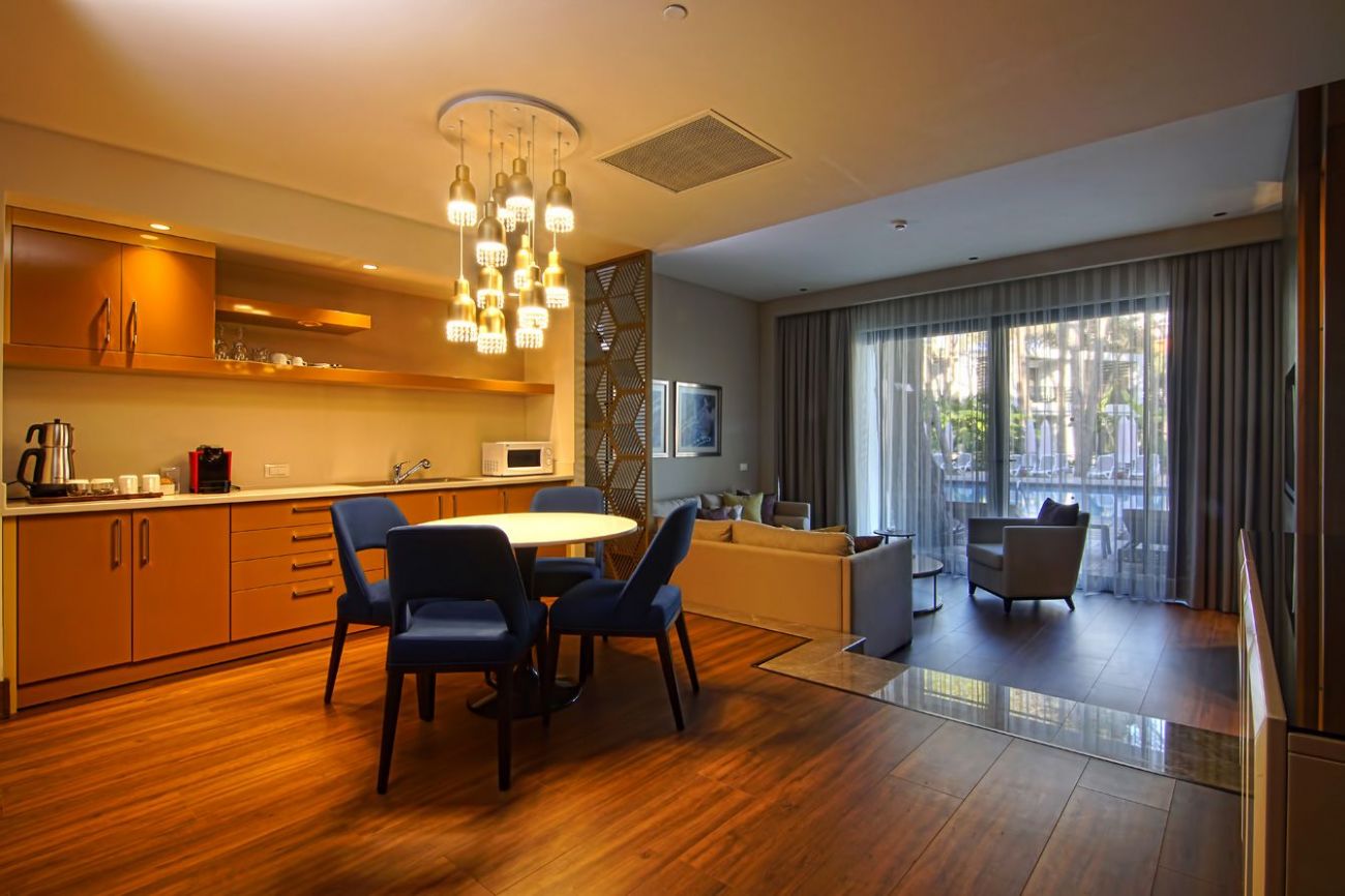 Хотелът е разположен на 15 км. от летище Анталия, на 25 км. от центъра на Анталия, в района на Кунду - Лара, на брега на морето.