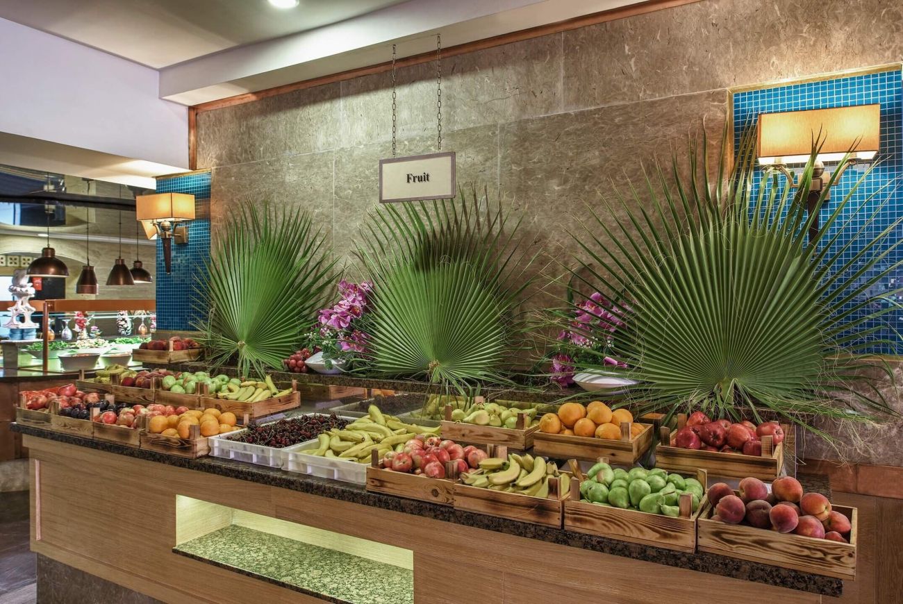 Основен ресторант, 6 ресторанта a-la-carte (китайски, мексикански, италиански, рибен, грил, османски - с предварителна резервация, за едноседмичен престой едно посещение на два ресторанта - безплатно ), 9 бара, 3 открити басейна, закрит басейн, 3 водни пързалки, лекарски кабинет, спа-център, фризьорски салон, търговска алея, пералня, химическо чистене, конферентна зала (за 350 души)