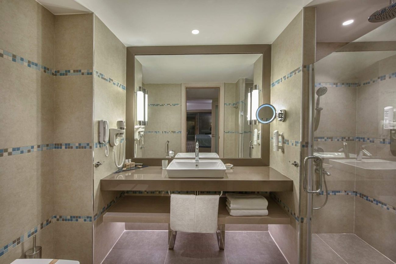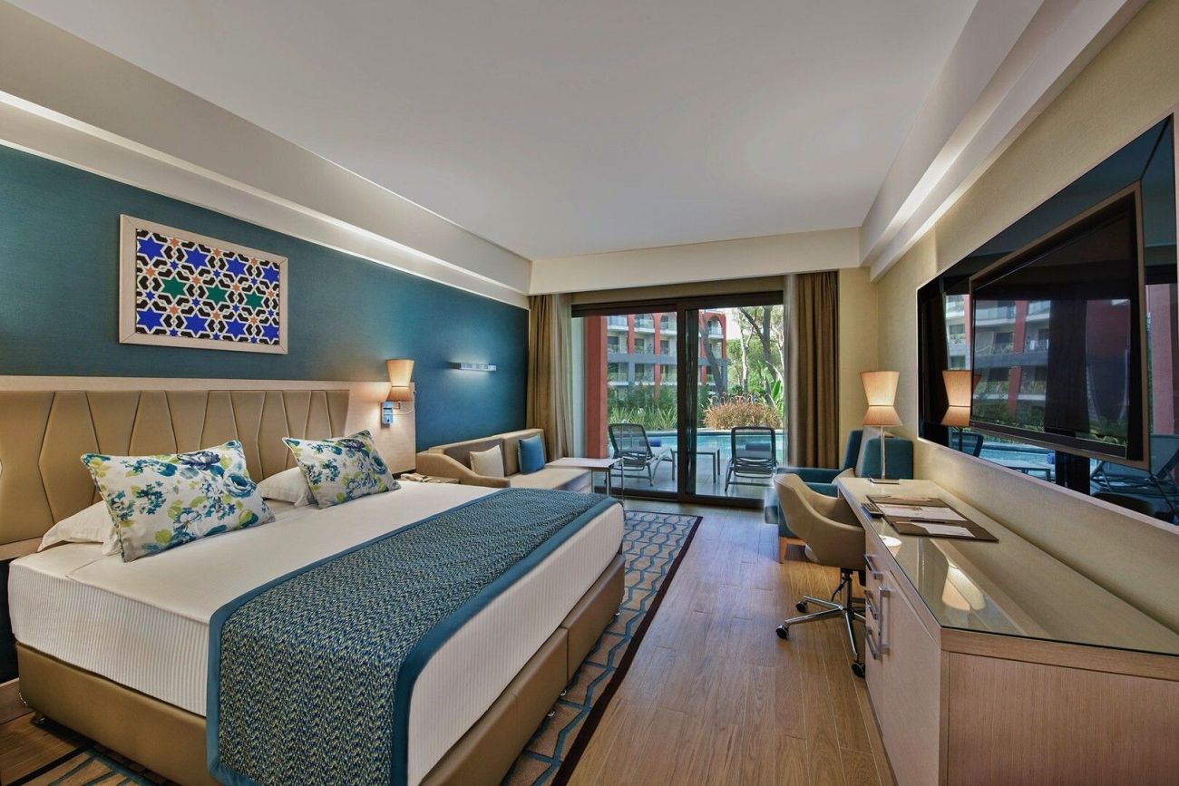Хотелът се състои от една 4-етажна основна сграда, пет 2 и 3-етажни клубни сгради и четири 5-етажни сгради делукс. Всички стаи разполагат с балкон/тераса, климатик, телевизор със сателитна телевизия, телефон, баня с душ, принадлежности за баня, сешоар, мини бар (зарежда се един път на ден с вода и безалкохолни напитки), сейф (безплатен). Почистване на стаите - всеки ден, смяна на спално бельо - 3 пъти седмично.