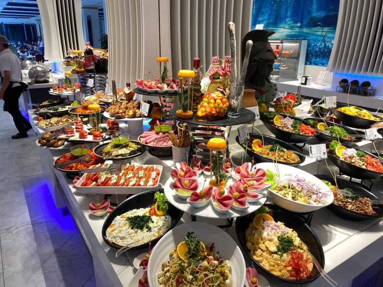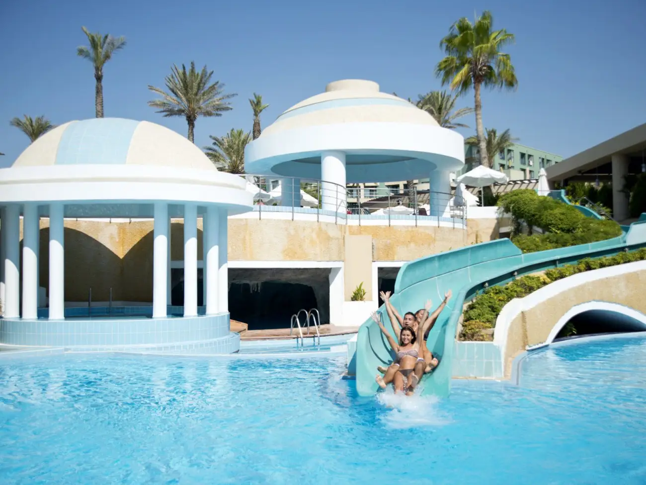 Основен ресторант, 5 открити басейна, закрит басейн, водни пързалки, амфитеатър, жива музика, дискотека (безплатно), обмен на валута, магазини, интернет кафе (срещу заплащане).
