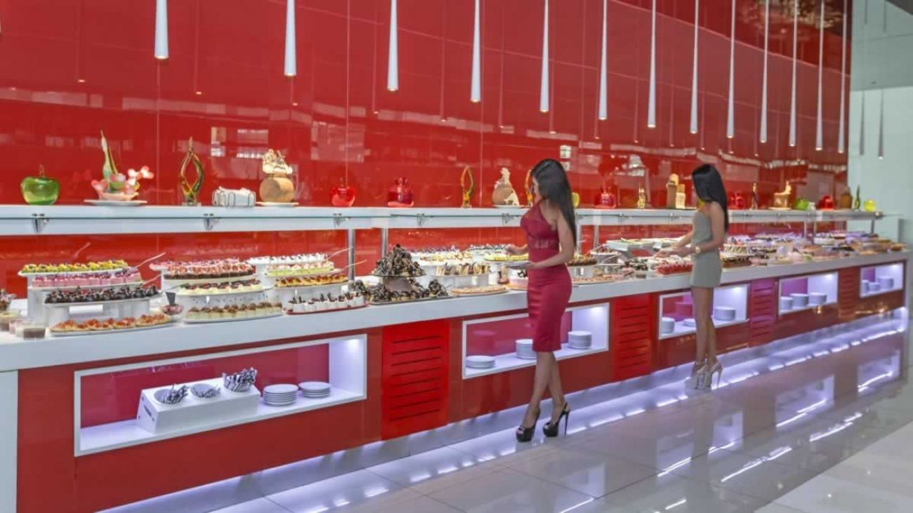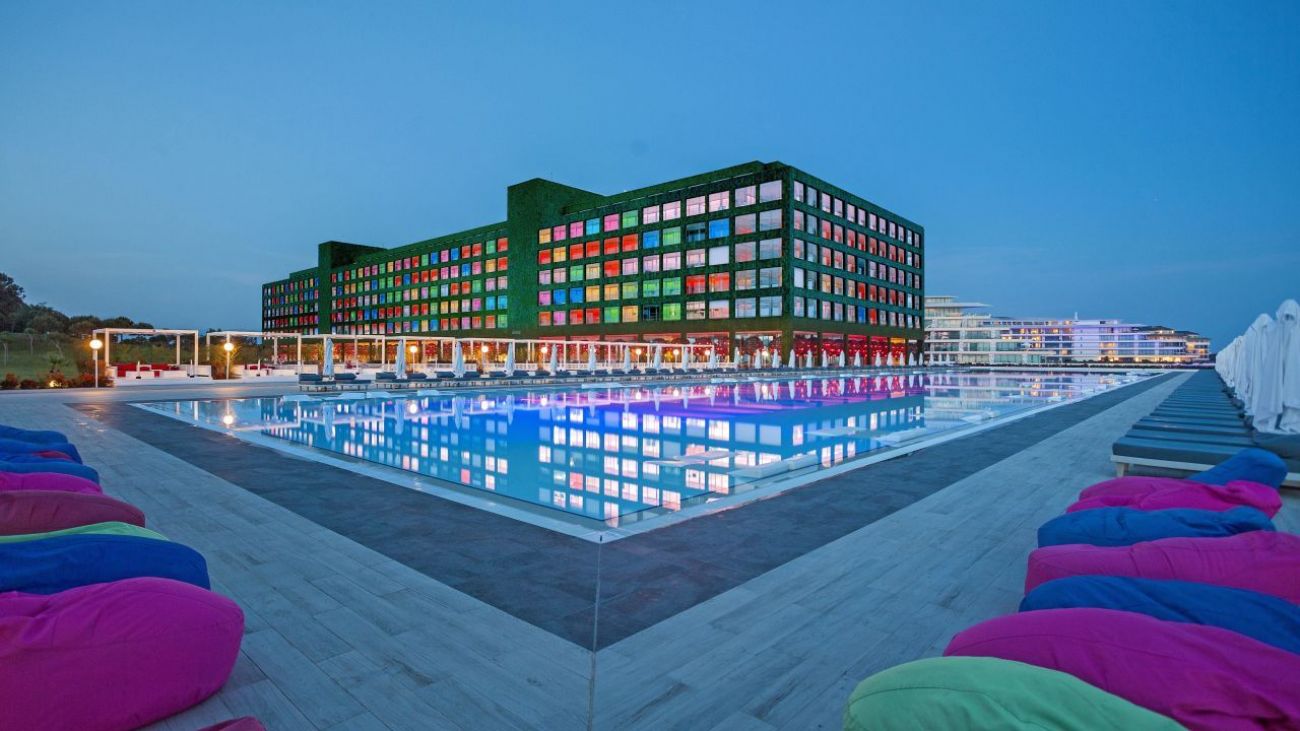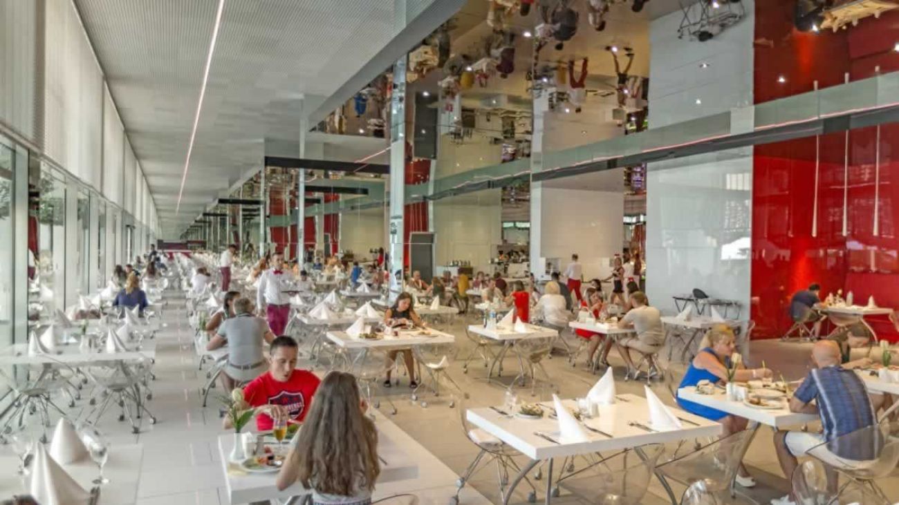 основен ресторант, диетично меню, 6 ресторанта a-la-carte (турски, рибен, италиански - резервацията се заплаща; международен, японски, романтичен ресторант, ресторант Blind - с предварителна резервация, платено (меню)), 7 бара, 3 открити басейна, закрит басейн (работи през зимния период), 4 водни пързалки, лекарски кабинет, SPA-център, фризьорски салон, търговска част, пералня, химическо чистене, 16 конферентни зали (за 40-2100 чов.)