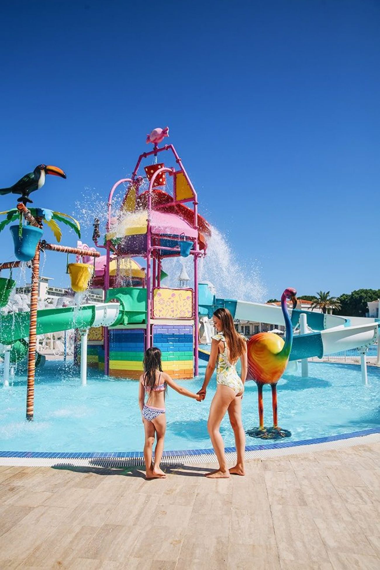 Основен ресторант, 3 а-ла-карт ресторанта (средиземноморски, турски, италиански– 1 безплатно посещение при минимум 7 нощувки), интернационален ресторант (с а-ла-карт обслужване), сладкарница, 6 бара, 2 открити и 1 закрит басейн, аквапарк, СПА център, магазини, конферентна зала.