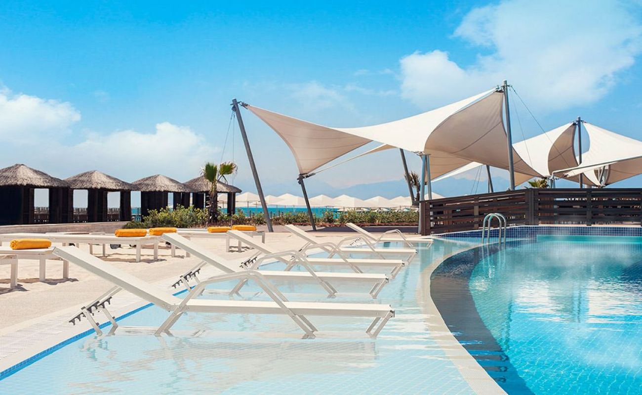Собствен, пясък/малки камъчета. Пирс. Бар на плажа: безплатно. На басейна и на плажа: чадъри, шезлонги, матраци - безплатно. Шатри на плажа: платено. Плажни кърпи - безплатно.