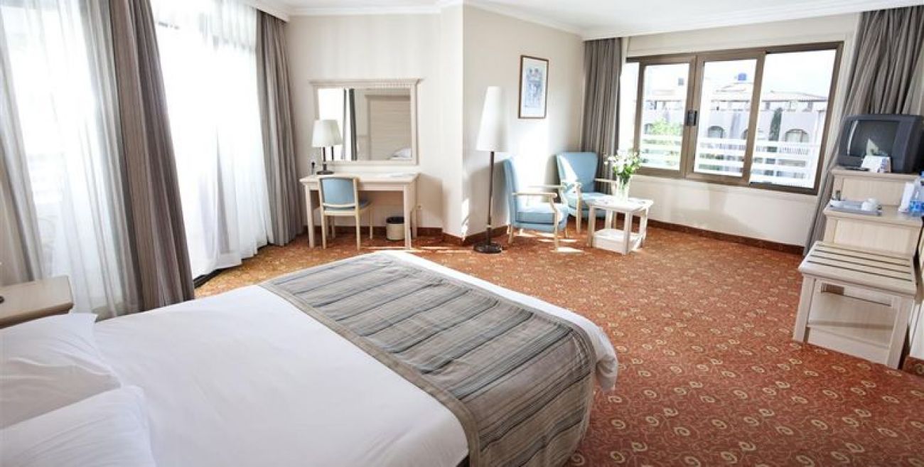 Хотелът предлага настаняване в 218 стандартни стаи ( 109 със изглед море и площ от 20 кв.м.), 2 стаи за инвалиди, 6 едностайни апартамента с площ от 26 кв.м. и възможност за настаняване до 4 човека) 8 двустайни апарамента с изглед море 35 кв.м, включват хол и спалня и имат възможност за настаняване на максимум 5 човека), 8 ъглови апартамента с изглед море и площ от 30 кв.м. с възможност за настаняване на максимум 4 човека). Стаите са с балкон и са оборудвани с централен климатик, телефон, телевизор, мини бар (срещу заплащане), сейф в стаята (безплатен) и сешоар, имат баня с вана, халат и пантофи и предлагат 24 часа рум сървиз.